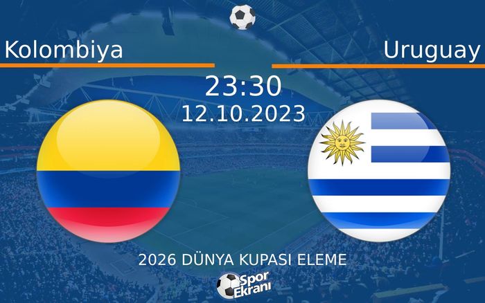 Kolombiya ile Uruguay, 2026 Dünya Kupasi Eleme maçında karşı karşıya geliyor. Maçı canlı izlemek isteyen sporseverler, müsabakanın yayın saati ve yayıncı bilgileri ile yayının şifresiz olup olmadığını merak ediyor. Kolombiya – Uruguay, 2026 Dünya Kupasi Eleme maçı, 12-10-2023 Perşembe günü Yayın Yok, kanal(lar)ından yayınlanacak. Maçın başlama saati 23:30. Karşılaşmayı izleyebileceğiniz platform ve kanal bilgilerini aşağıdaki tabloda görebilirsiniz.