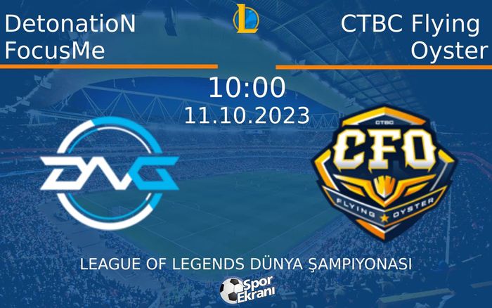 DetonatioN FocusMe ile CTBC Flying Oyster arasındaki League of Legends Dünya Şampiyonasi maçı, LOL Şampiyonluk Ligi Youtube kanal(lar)ından canlı maç izlenebilecek.
