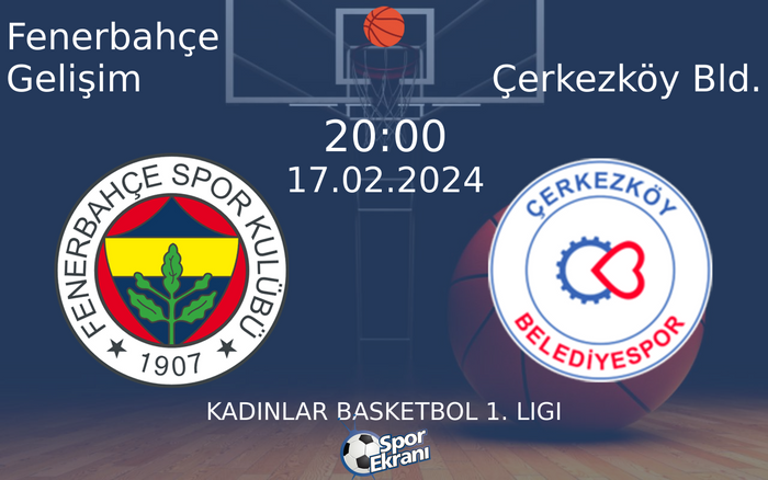 Fenerbahçe Gelişim ve Çerkezköy Bld., karşı karşıya geleceği Kadinlar Basketbol 1. Ligi maçı, İstanbul'da, Fenerbahçe Metro Enerji Spor Salonu Stadyumu'nda oynanacak.