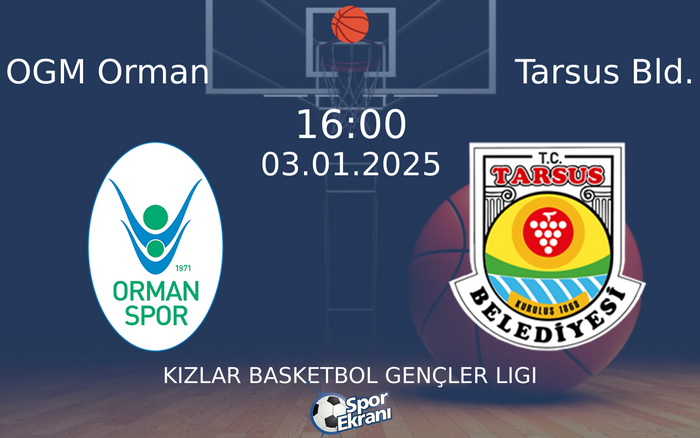OGM Orman ve Tarsus Bld., karşı karşıya geleceği Kizlar Basketbol Gençler Ligi maçı, Ankara'da, M.Sait Zarifoğlu Spor Salonu Stadyumu'nda oynanacak.