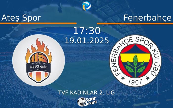 Ateş Spor ve Fenerbahçe, karşı karşıya geleceği TVF Kadinlar 2. Lig maçı, İstanbul'da, 50. Yıl Deniz Esinduy Spor Salonu Stadyumu'nda oynanacak.