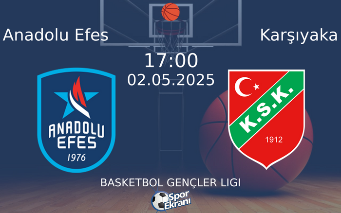 Anadolu Efes ve Karşıyaka, karşı karşıya geleceği Basketbol Gençler Ligi maçı, İstanbul'da, Ahmet Cömert Spor Salonu Stadyumu'nda oynanacak.