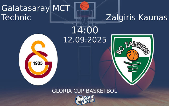 Galatasaray MCT Technic ile Zalgiris Kaunas, Gloria Cup Basketbol maçında karşı karşıya geliyor. Maçı canlı izlemek isteyen sporseverler, müsabakanın yayın saati ve yayıncı bilgileri ile yayının şifresiz olup olmadığını merak ediyor. Galatasaray MCT Technic – Zalgiris Kaunas, Gloria Cup Basketbol maçı, 12-09-2025 Cuma günü Gloria Arena Youtube, kanal(lar)ından yayınlanacak. Maçın başlama saati 14:00. Karşılaşmayı izleyebileceğiniz platform ve kanal bilgilerini aşağıdaki tabloda görebilirsiniz.