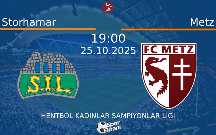 Storhamar ile Metz, Hentbol Kadinlar Şampiyonlar Ligi maçında karşı karşıya geliyor. Maçı canlı izlemek isteyen sporseverler, müsabakanın yayın saati ve yayıncı bilgileri ile yayının şifresiz olup olmadığını merak ediyor. Storhamar – Metz, Hentbol Kadinlar Şampiyonlar Ligi maçı, 25-10-2025 Cumartesi günü EHF TV, kanal(lar)ından yayınlanacak. Maçın başlama saati 19:00. Karşılaşmayı izleyebileceğiniz platform ve kanal bilgilerini aşağıdaki tabloda görebilirsiniz.